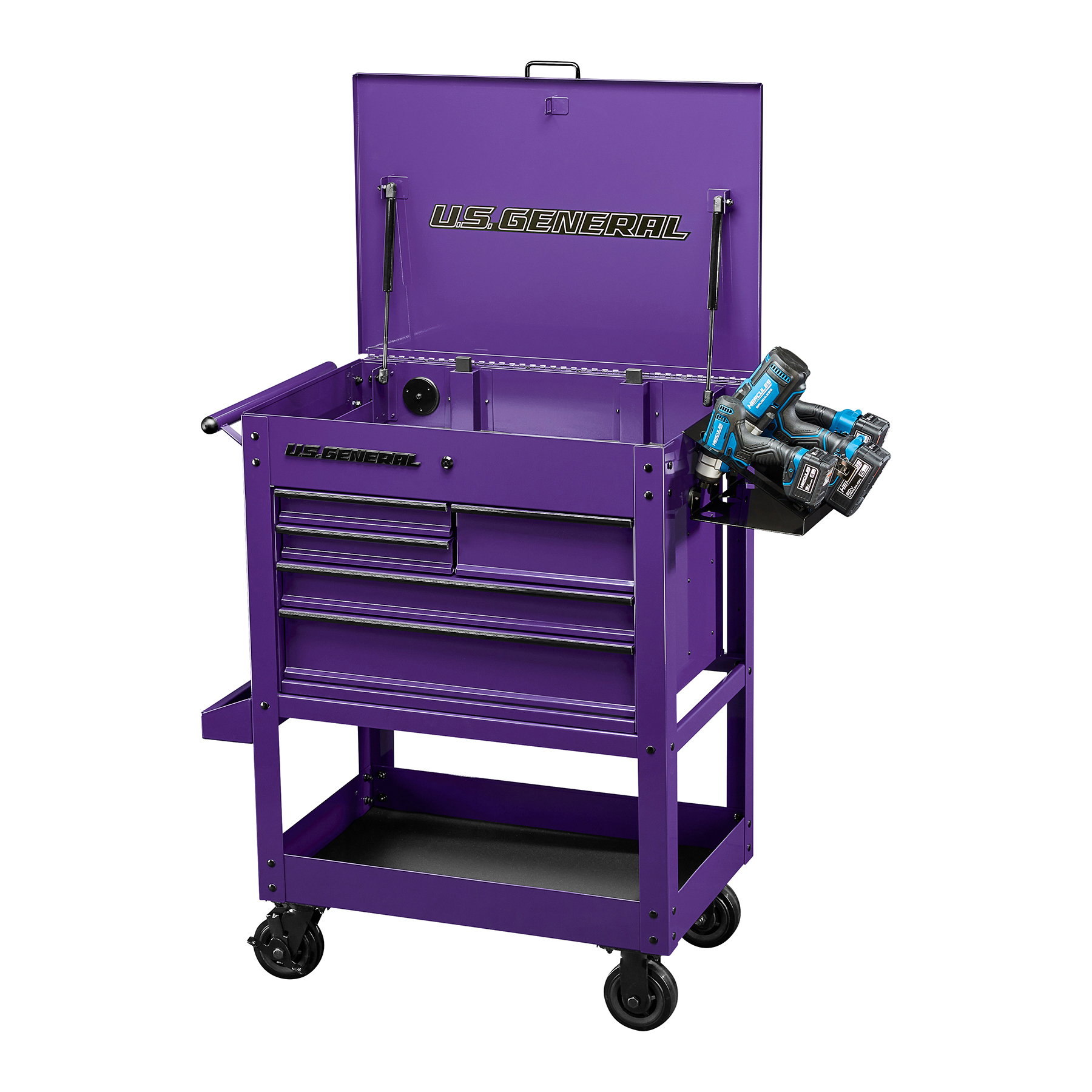 Of the U.S GENERAL 30 in. 5-Drawer Mechanics Cart, the PTIA judges praised its “great features” such as an integrated power port for charging tools, a side can holder, and a single barrel lock for drawers.