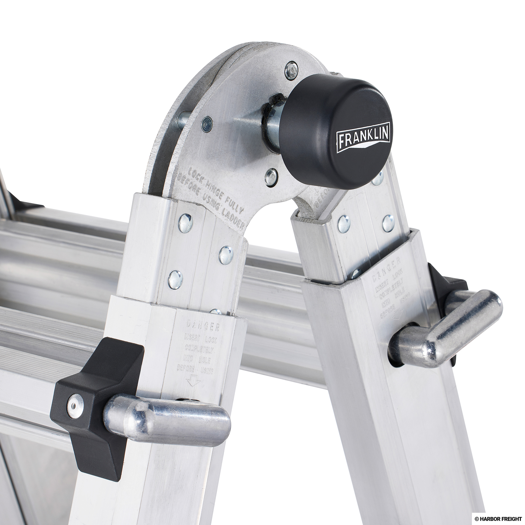 Whether for home improvement, professional contracting, or everyday maintenance, the Franklin 22-Foot Multitask Ladder combines strength, flexibility, and mobility in an all-in-one system. Built from superstrong aircraft-grade aluminum, this ladder supports up to 375 pounds, meets Type IAA duty standards, and offers up to 31 possible configurations for a wide range of tasks including extension, A-frame, staircase, and 90-degree wall positions.