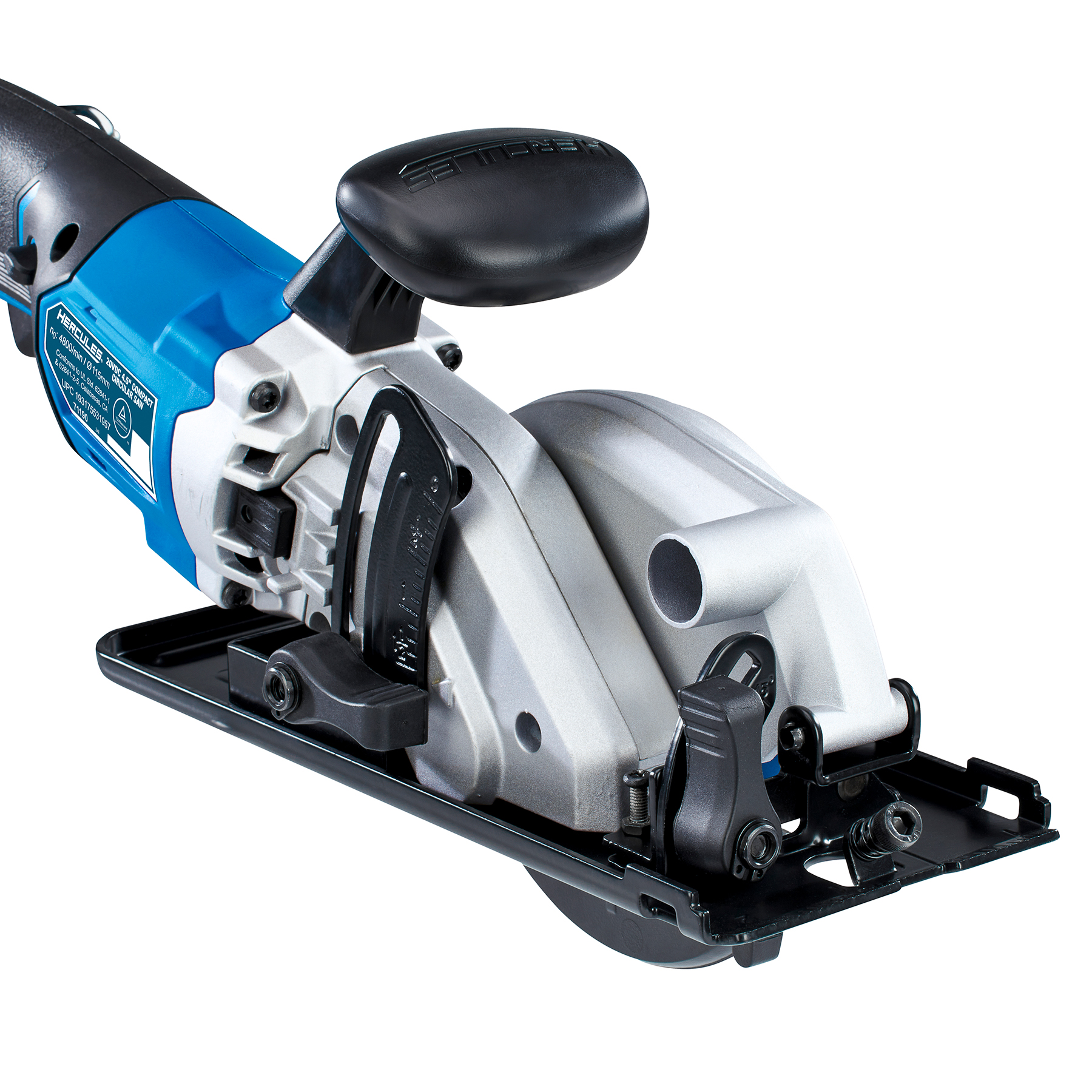 Featuring all-metal gearing for maximum tool life, the HERCULES Compact Circular Saw has a durable stamped steel shoe that has easy-to-read sight line indicators for 90° and 45° bevel cuts, and a 0-45° bevel for precise and accurate angled cuts.