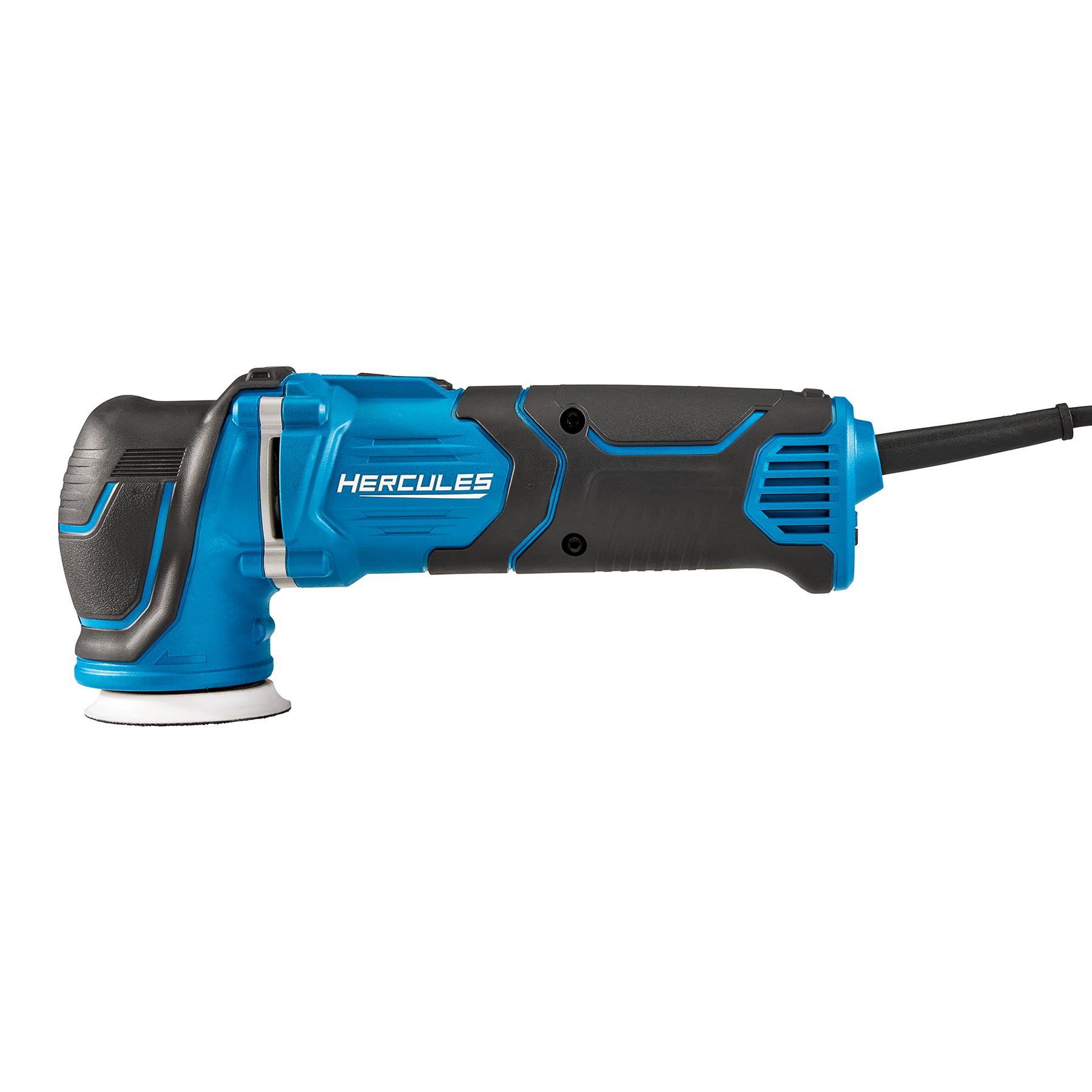 To maximize comfort during use, the HERCULES Long-Throw Random Orbit Dual-Action Polisher has a premium inline locking switch and ergonomic rubberized grips. A cushioned backing pad holds a 3 in. hook-and-loop pad. Maximum Vibration Control reduces vibration, and the soft start feature significantly lessens noise and decreases the chance of tripping a circuit breaker.