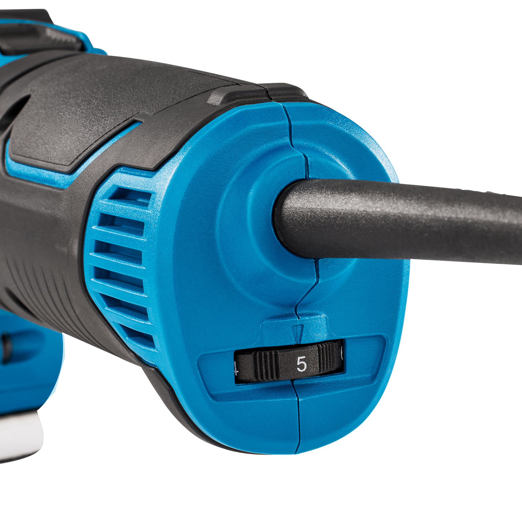 For added precision, it has a six-speed variable dial to adjust to the correct application, and the 12 mm dual-action random orbit throw provides fast cutting and removes swirls, holograms, and scratches on painted surfaces.