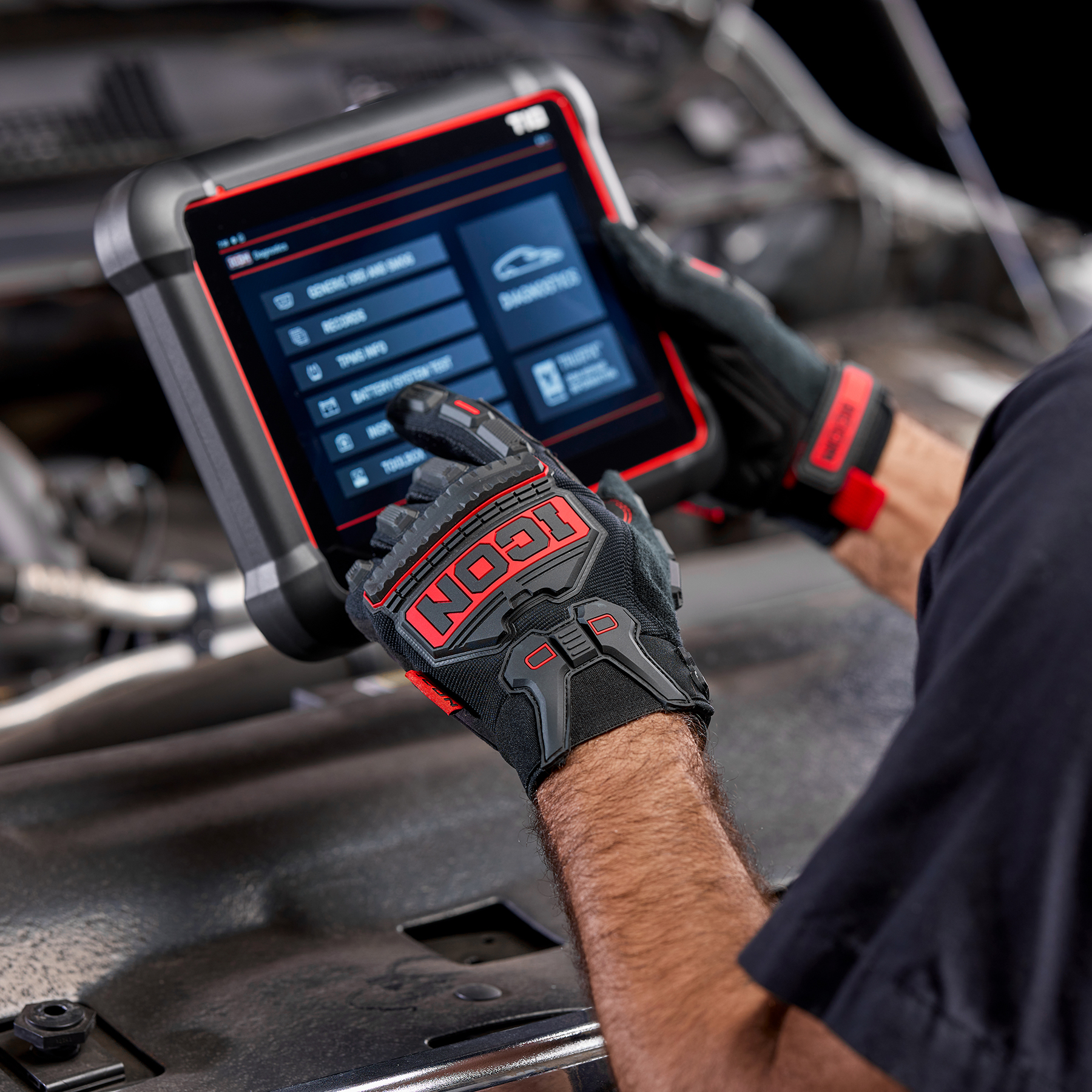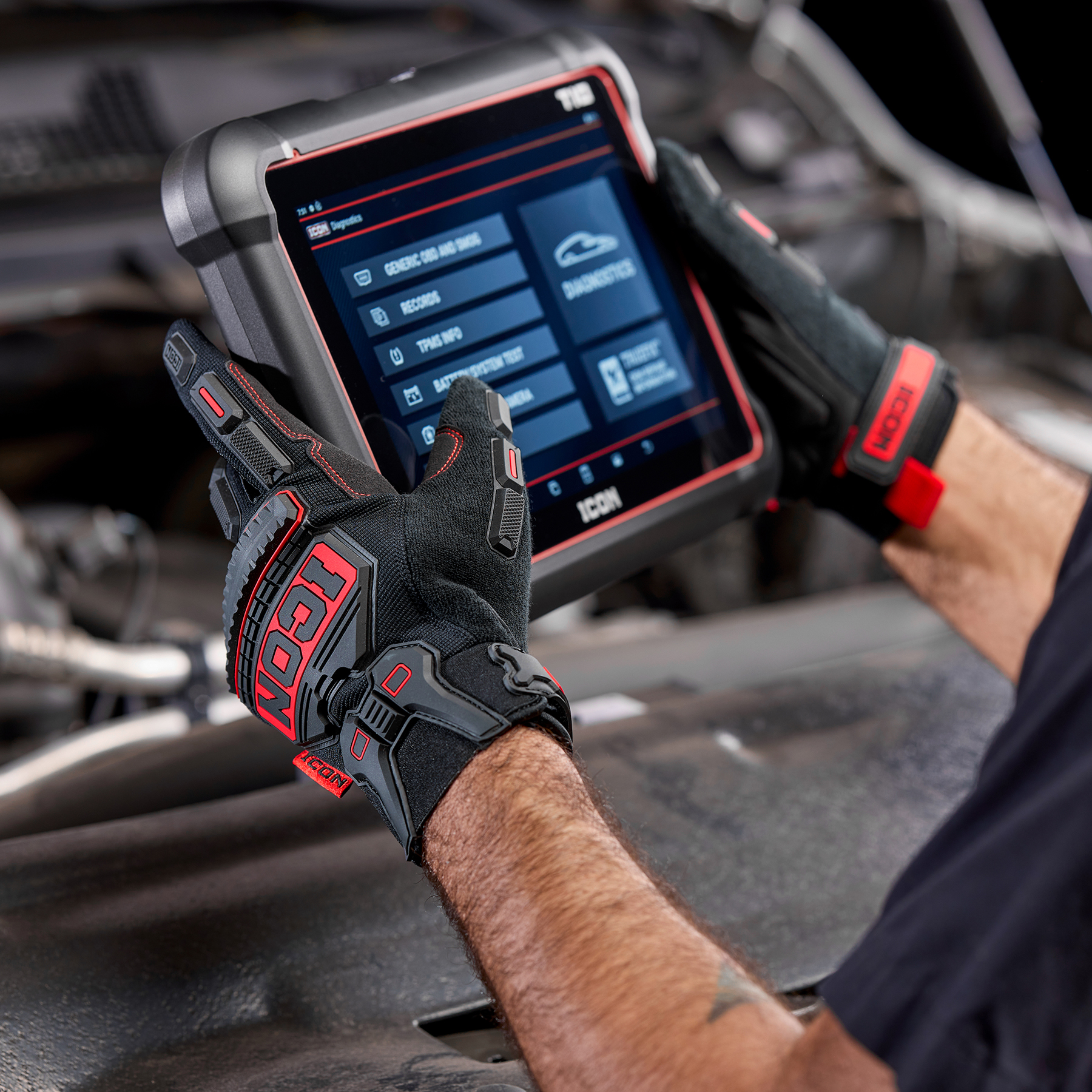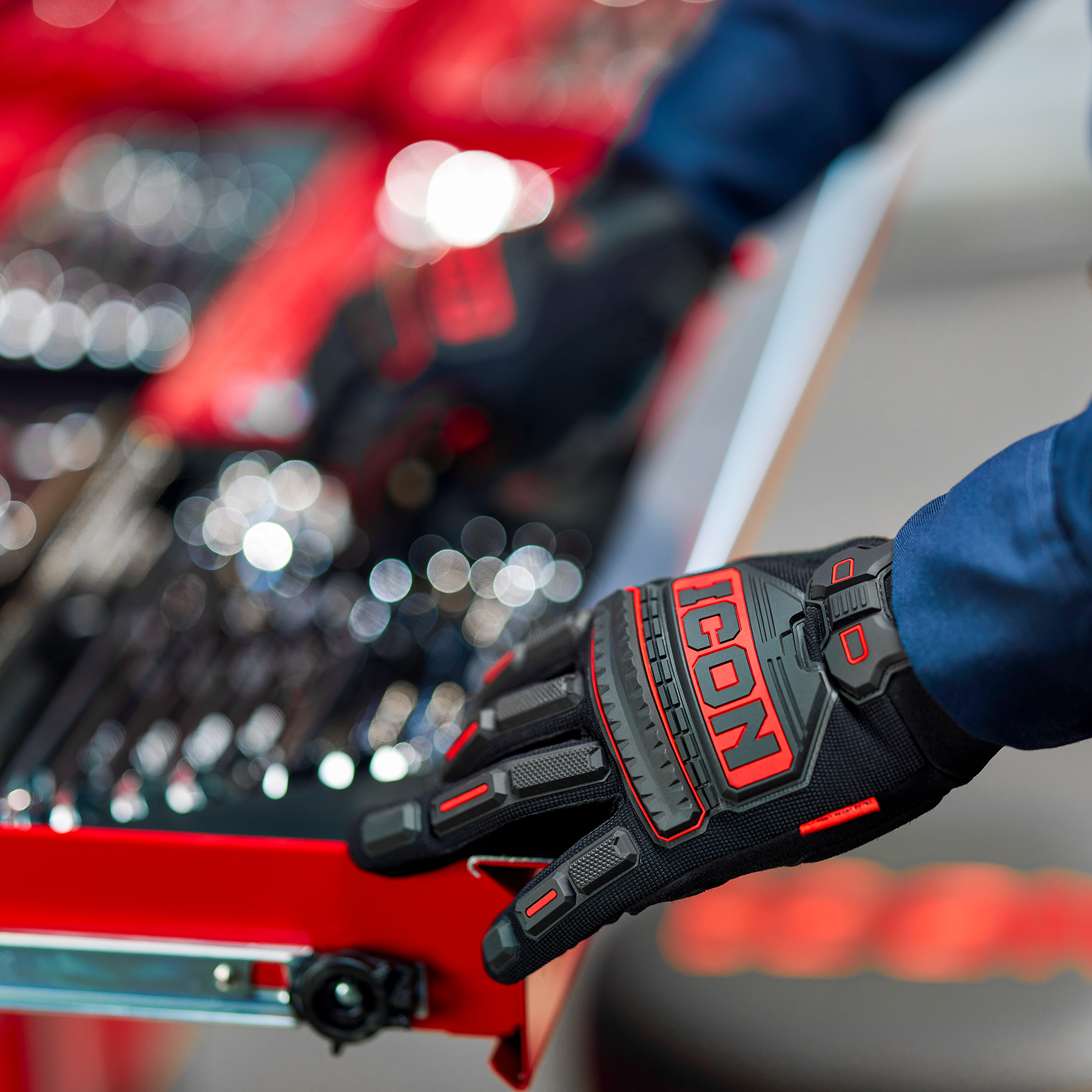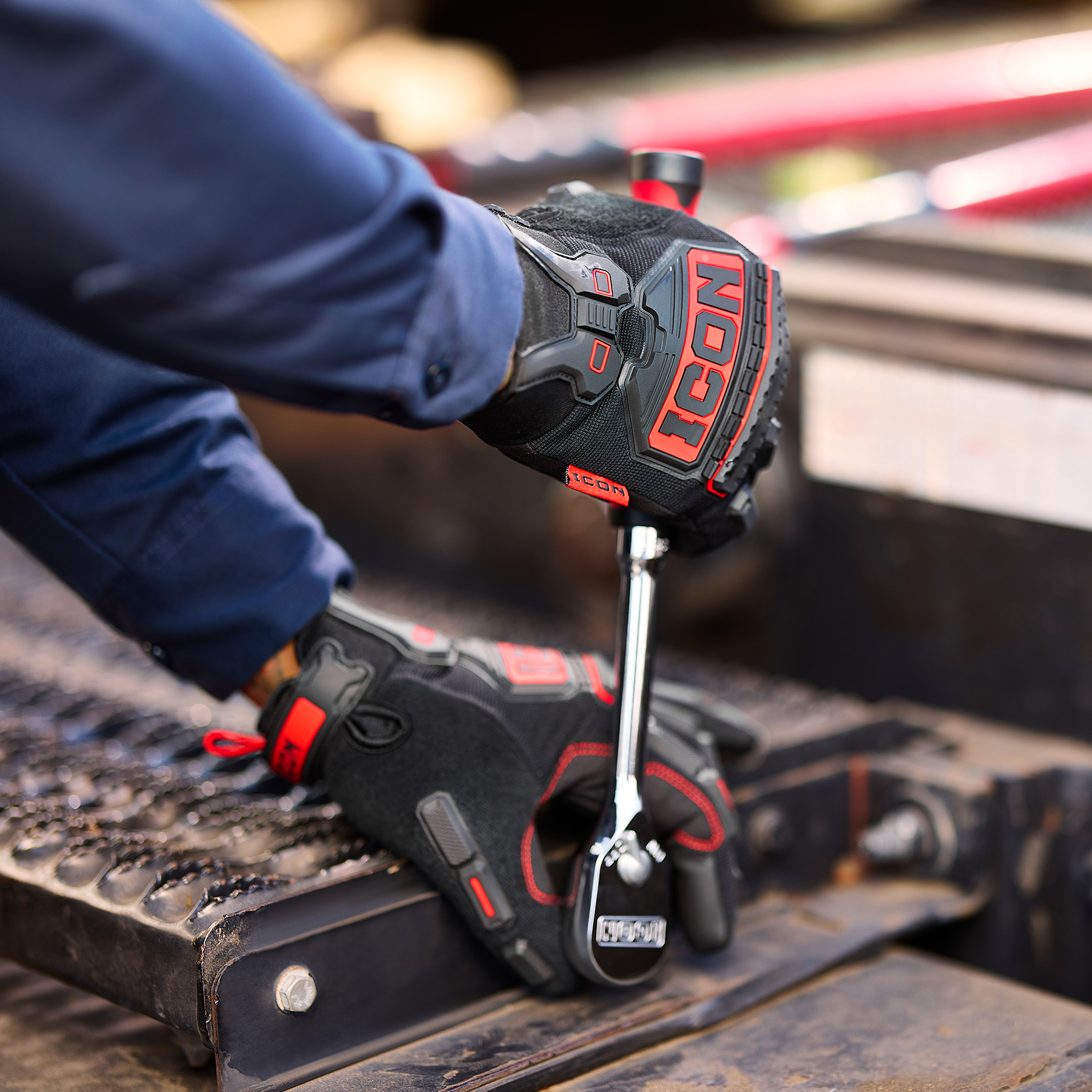 Whether working on an engine, doing metal fabrication or other types of heavy work, the ICON Master Technician Premium Work Gloves have full finger and back-of-hand TPR impact absorption.